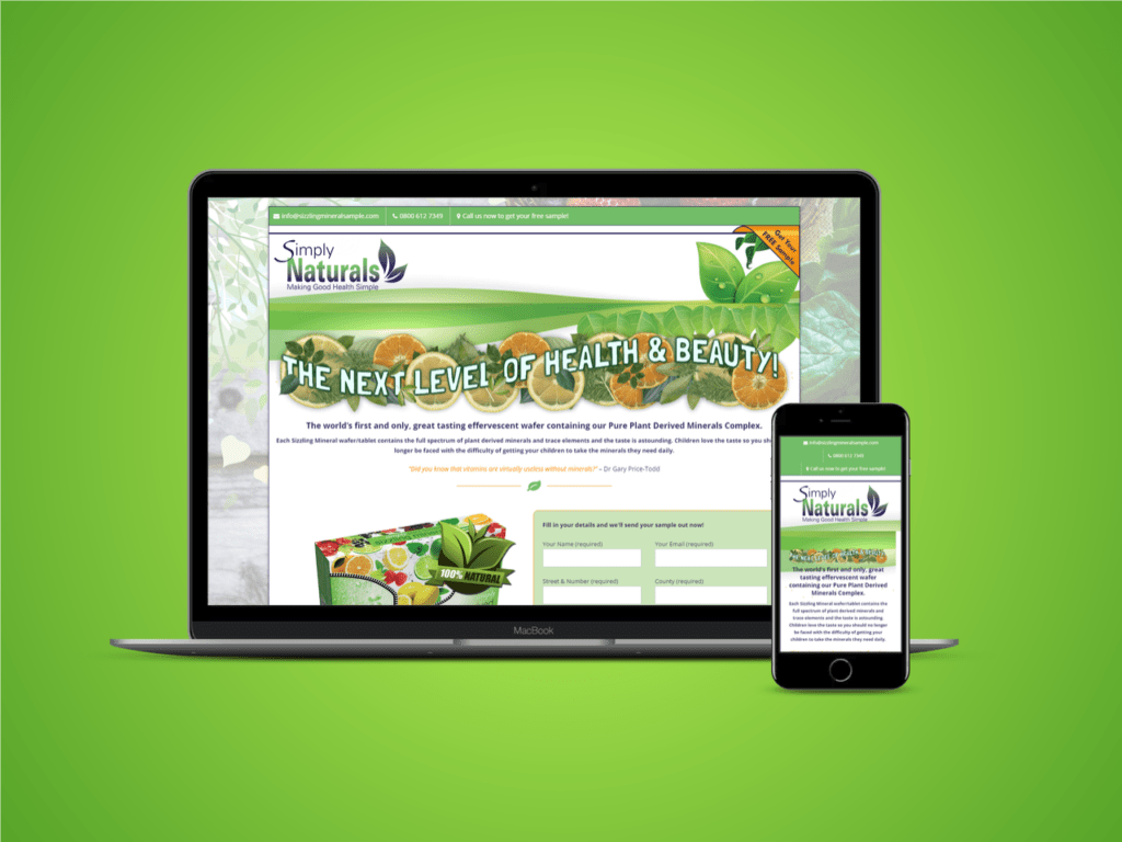 One page site for people to submit their details to receive a free sample of Sizzling Mineral.